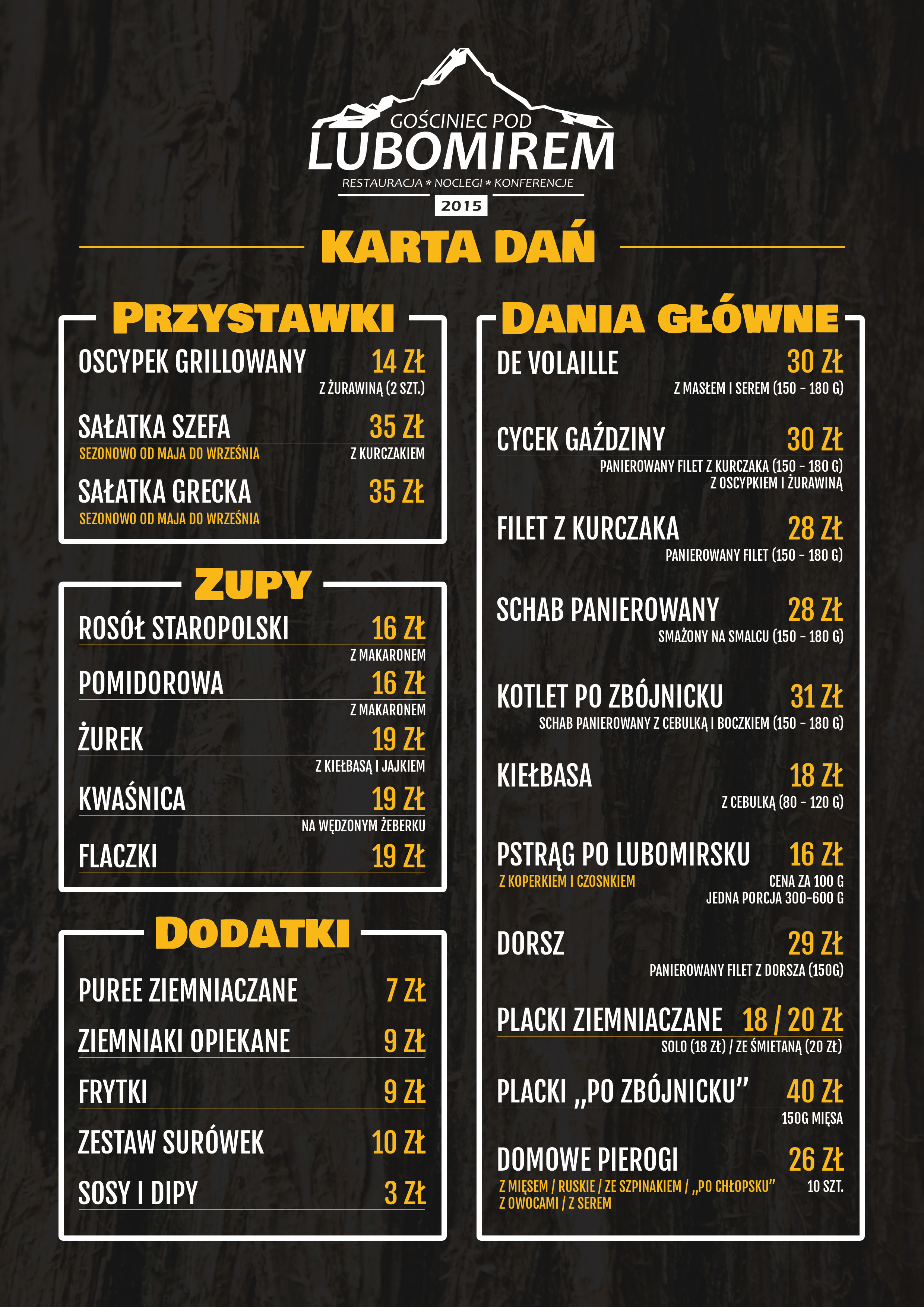 W dniach 1 i 2 listopada restauracja będzie nieczynna.